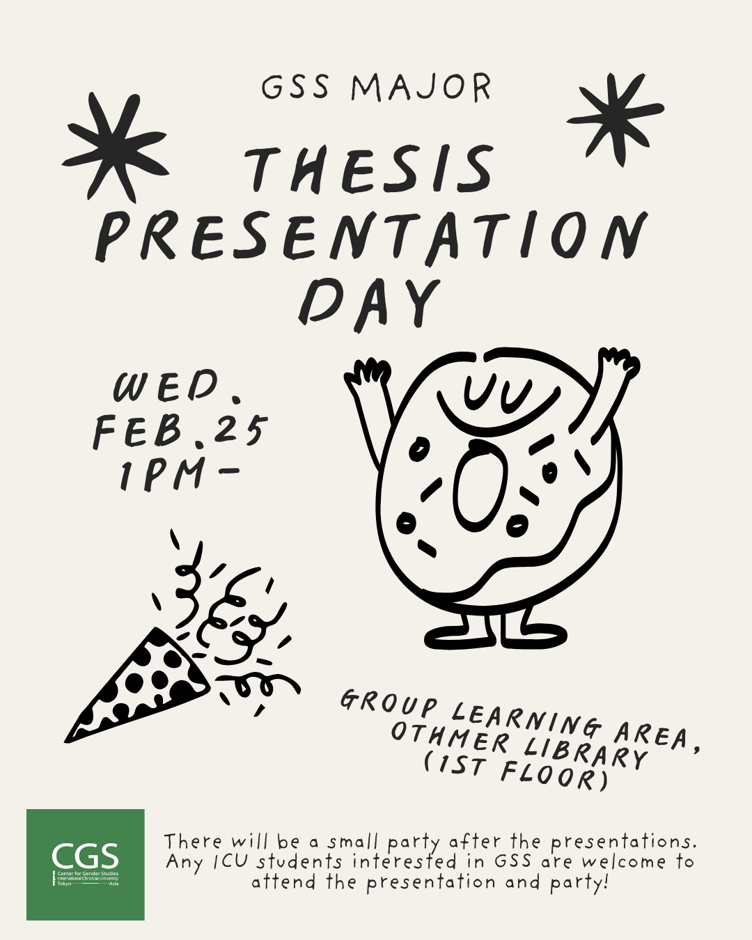 Those who are not presenting are also very welcome to join. Any ICU student interested in GSS is invited to attend.