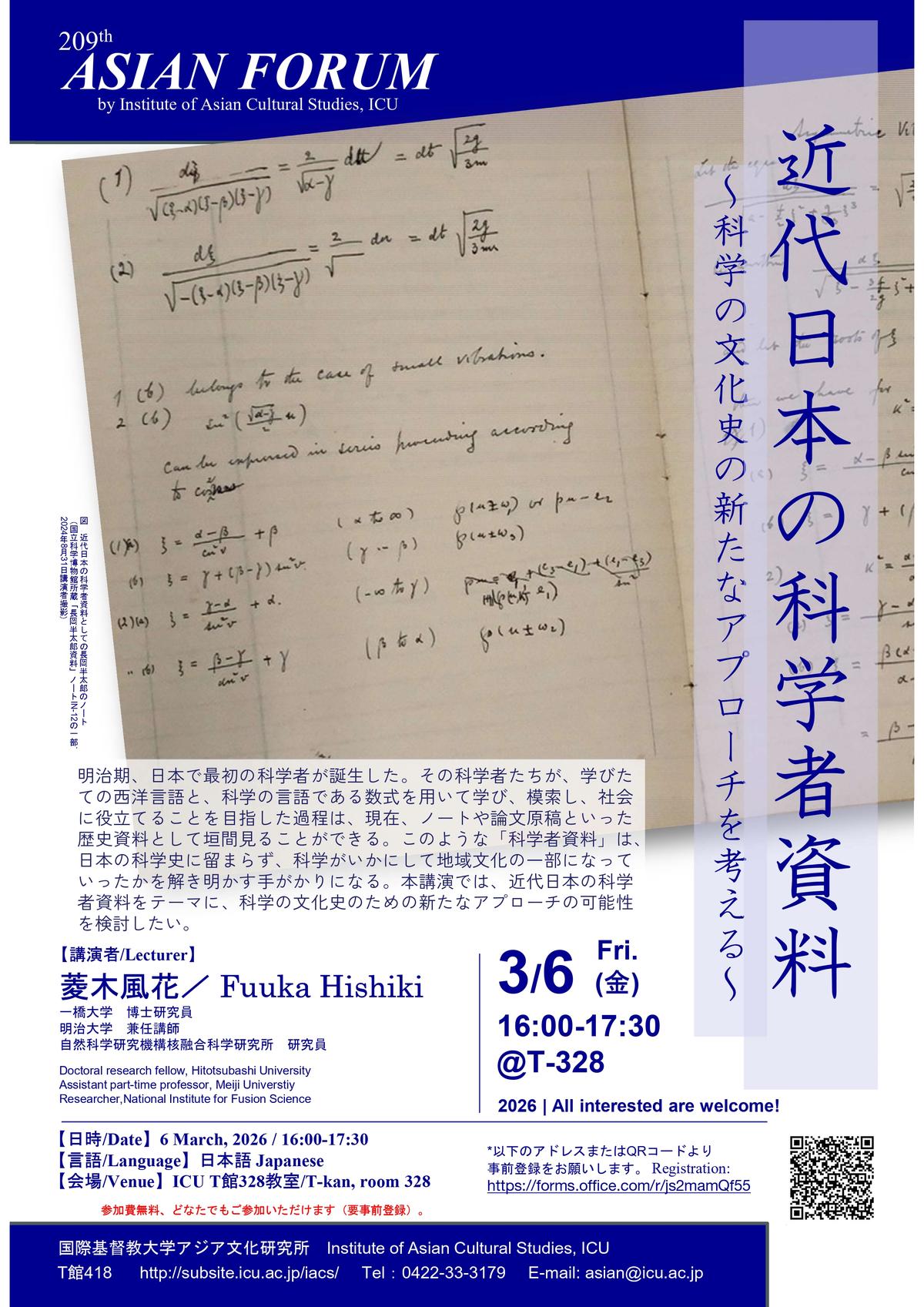 NEWThe 209th Asian Forum, "Scientists’ archival materials from modern Japan: Exploring new approaches to the cultural history of science"