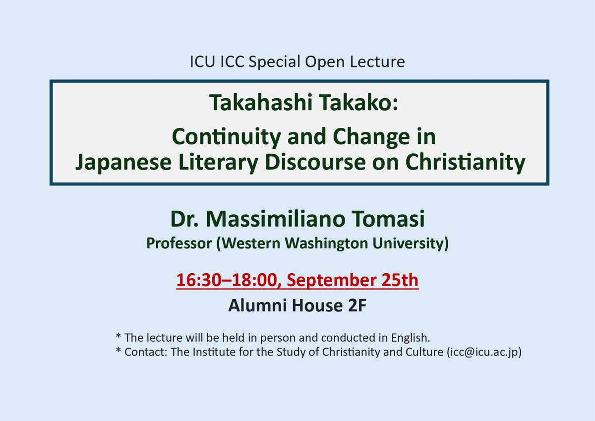 EndedSpecial Open Lecture: Takahashi Takako: Continuity and Change in Japanese Literary Discourse on Christianity