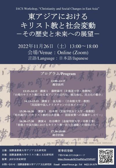 Workshop, "Christianity and Social Changes in East Asia", November 26th, 2022