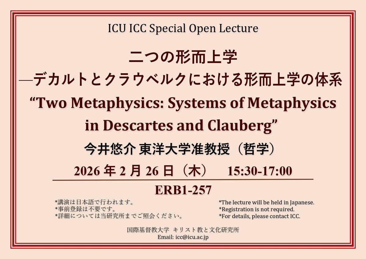 EndedSpecial Open Lecture : “Two Metaphysics: Systems of Metaphysics in Descartes and Clauberg”
