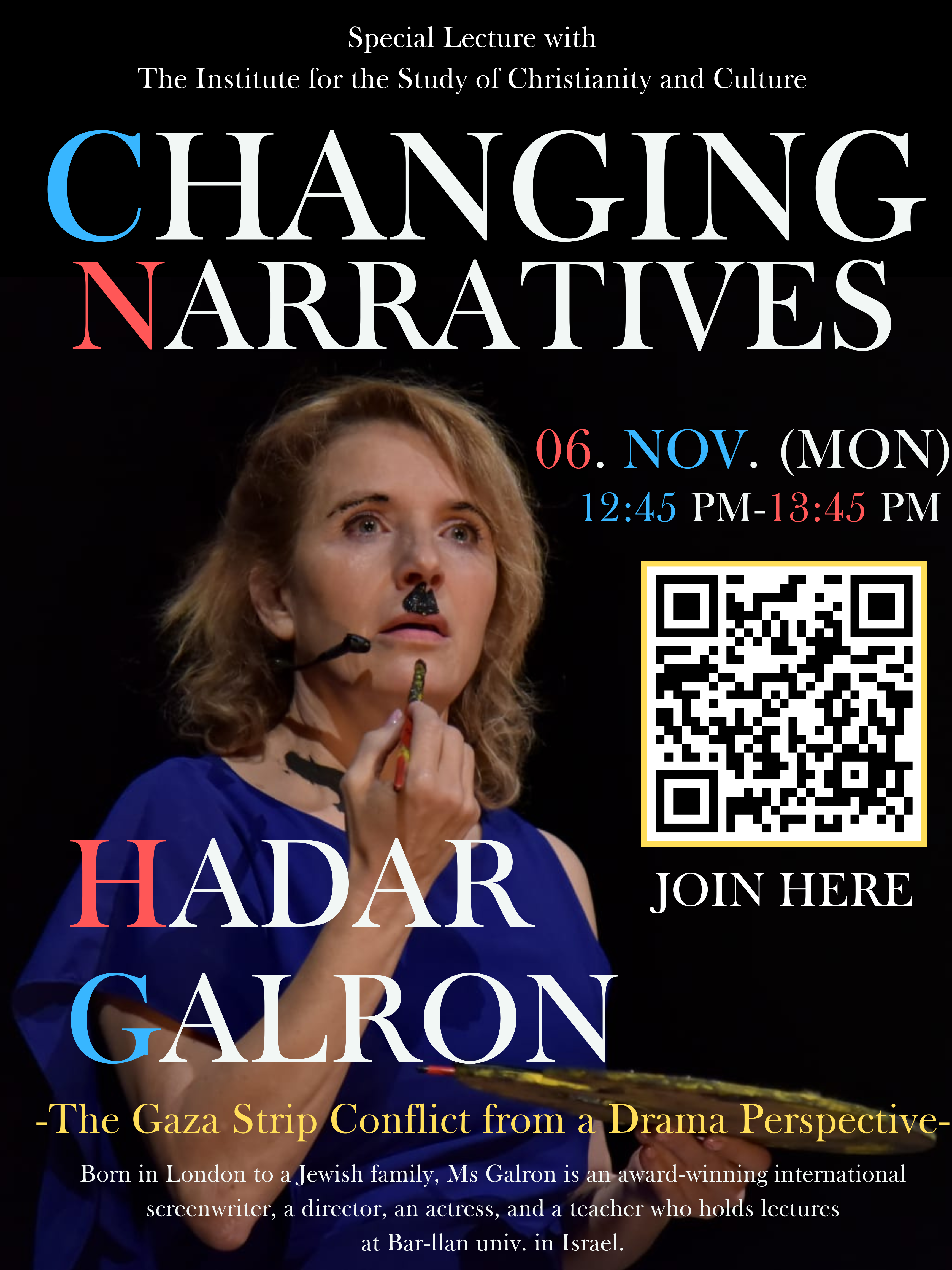 終了しました2023年11月6日(月)12:45-13:45 ICC特別公開講演 Changing Narratives: The Gaza Strip Conflict from a Drama Perspective*