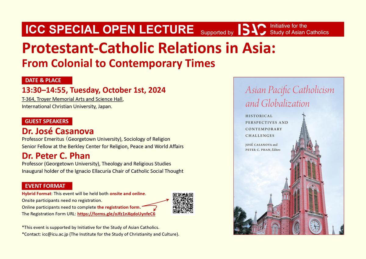 終了しました2024年10月1日(火)13:30-14:55 ICC特別公開講演会 Protestant-Catholic Relations in Asia: From Colonial to Contemporary Times*