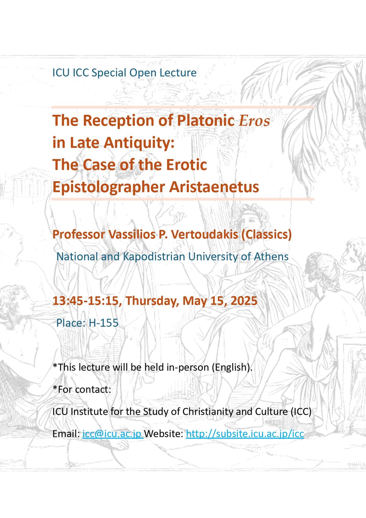 終了しました2025年5月15日(木)13:45-15:15 特別公開講演会:The Reception of Platonic Eros in Late Antiquity: The Case of the Erotic Epistolographer Aristaenetus