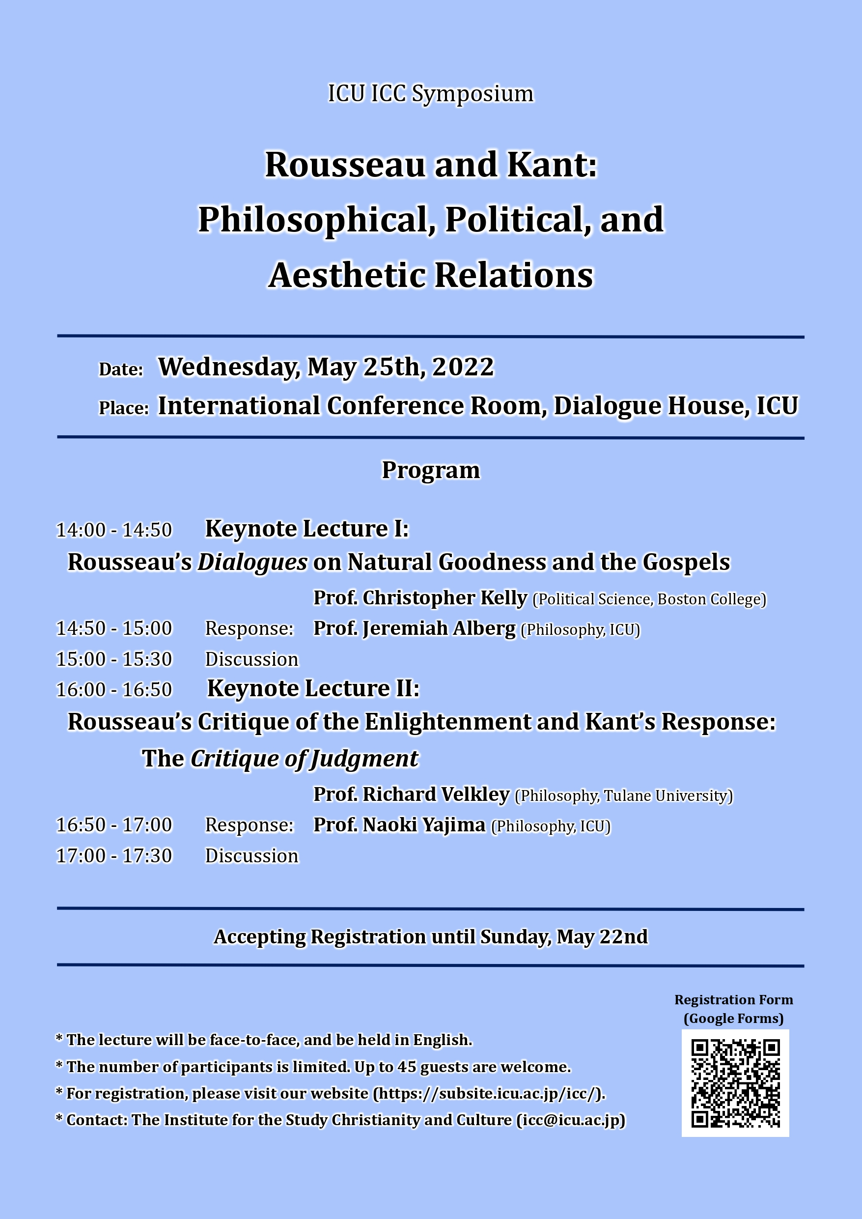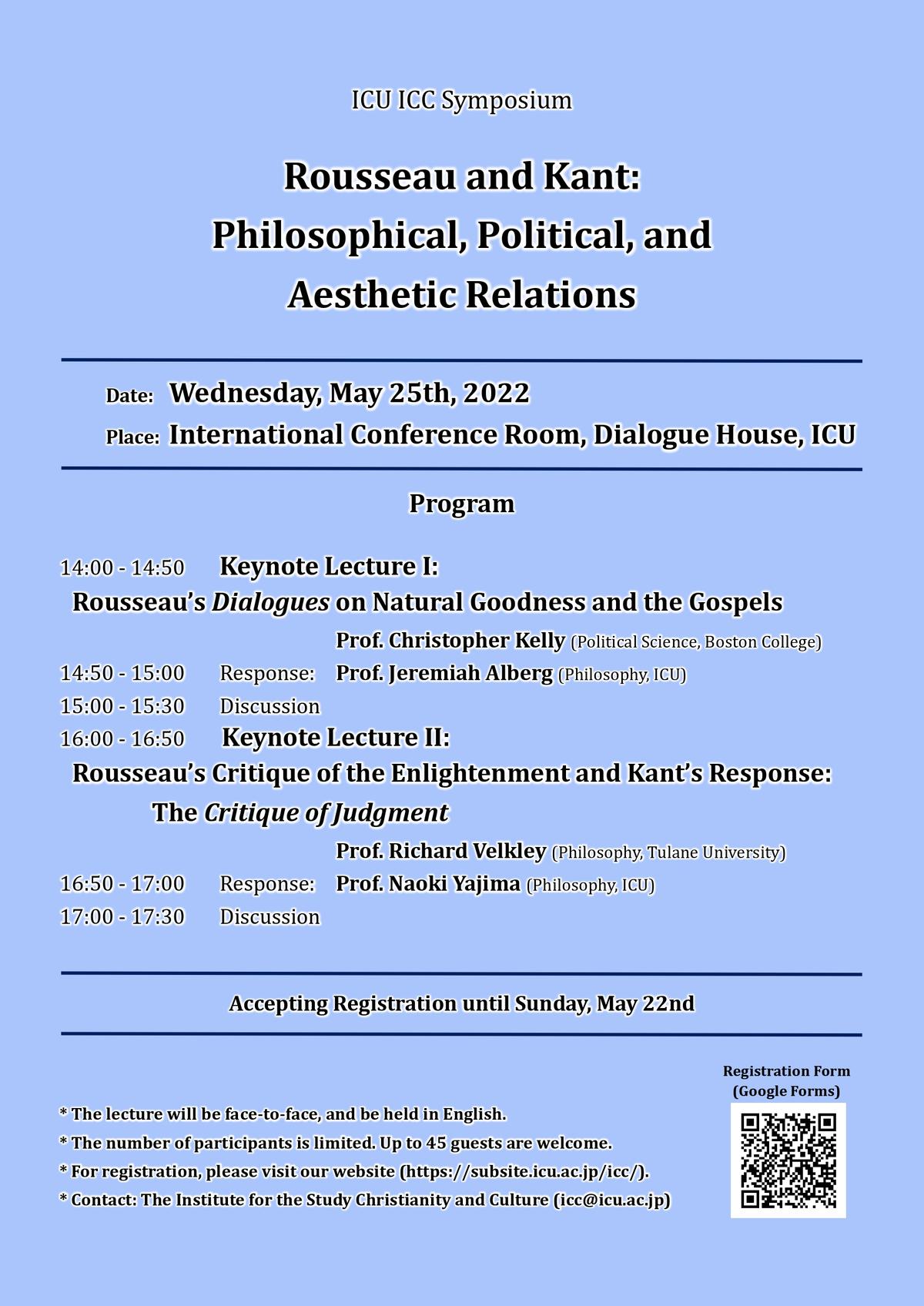 終了しました 2022年5月24日(水)14:00-17:30 シンポジウム Rousseau and Kant: Philosophical, Political, and Aesthetic Relations*