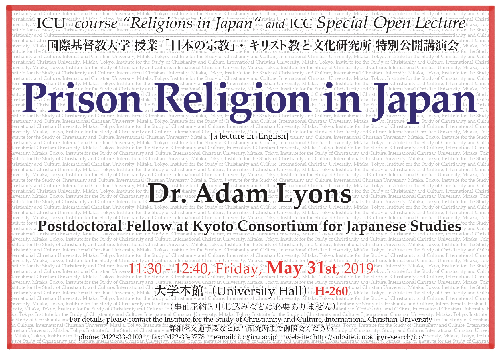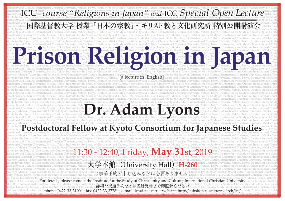 終了しました2019年 5月31日(金)11:30 - 12:40 ICC特別公開講演 "Prison Religion in Japan"